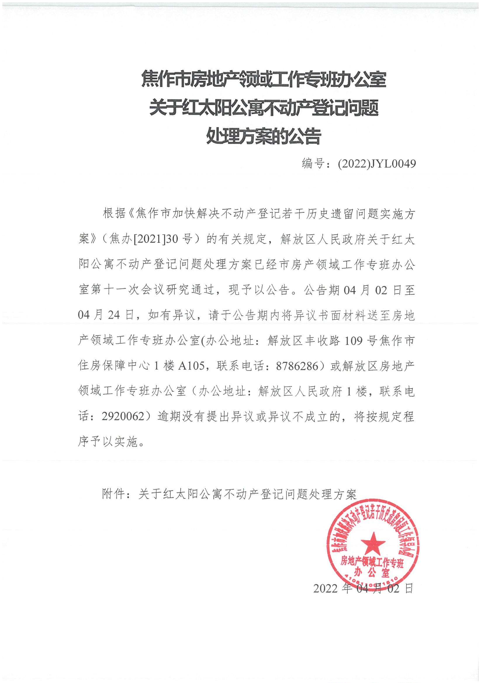 • 關(guān)于紅太陽不動產(chǎn)登記問題處理方案的公告